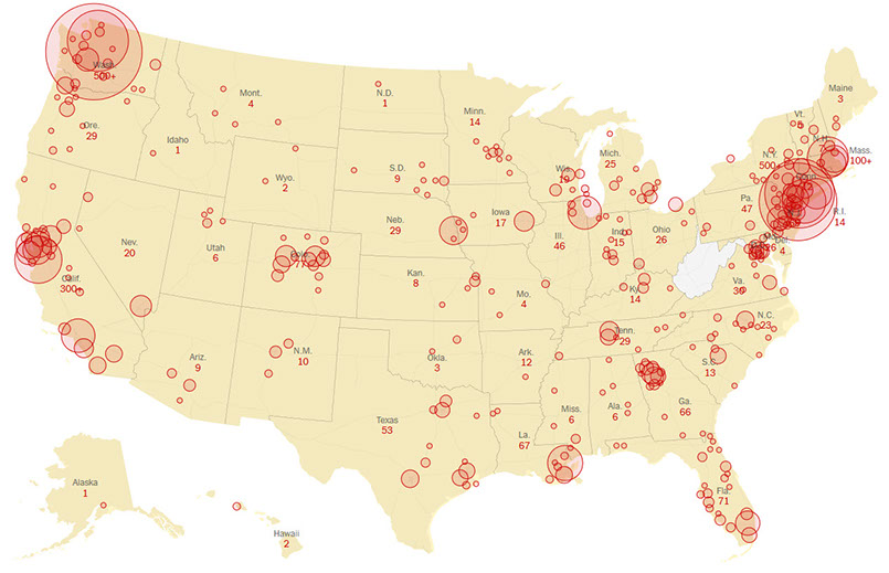 CDC data as of Sat, 14 March 2020 03.48pm EDT / 07.48pm UTC. Infographic from from the NY Times. Copied under fair-use exemption.